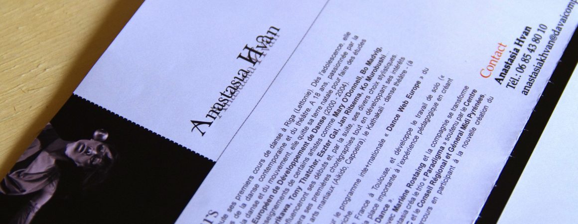 Création des flyers de deux spectacles de la compagnie de danse contemporaine DAVAï, ainsi qu’un journal (A3 plié en 4).